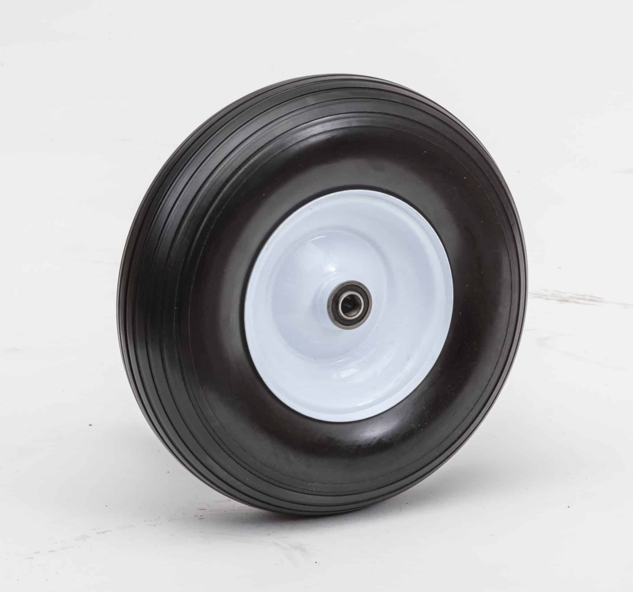 13″ 400-6, Flat Free Wheel Assembly, Ribbed Tread, Wheelbarrow Wheel