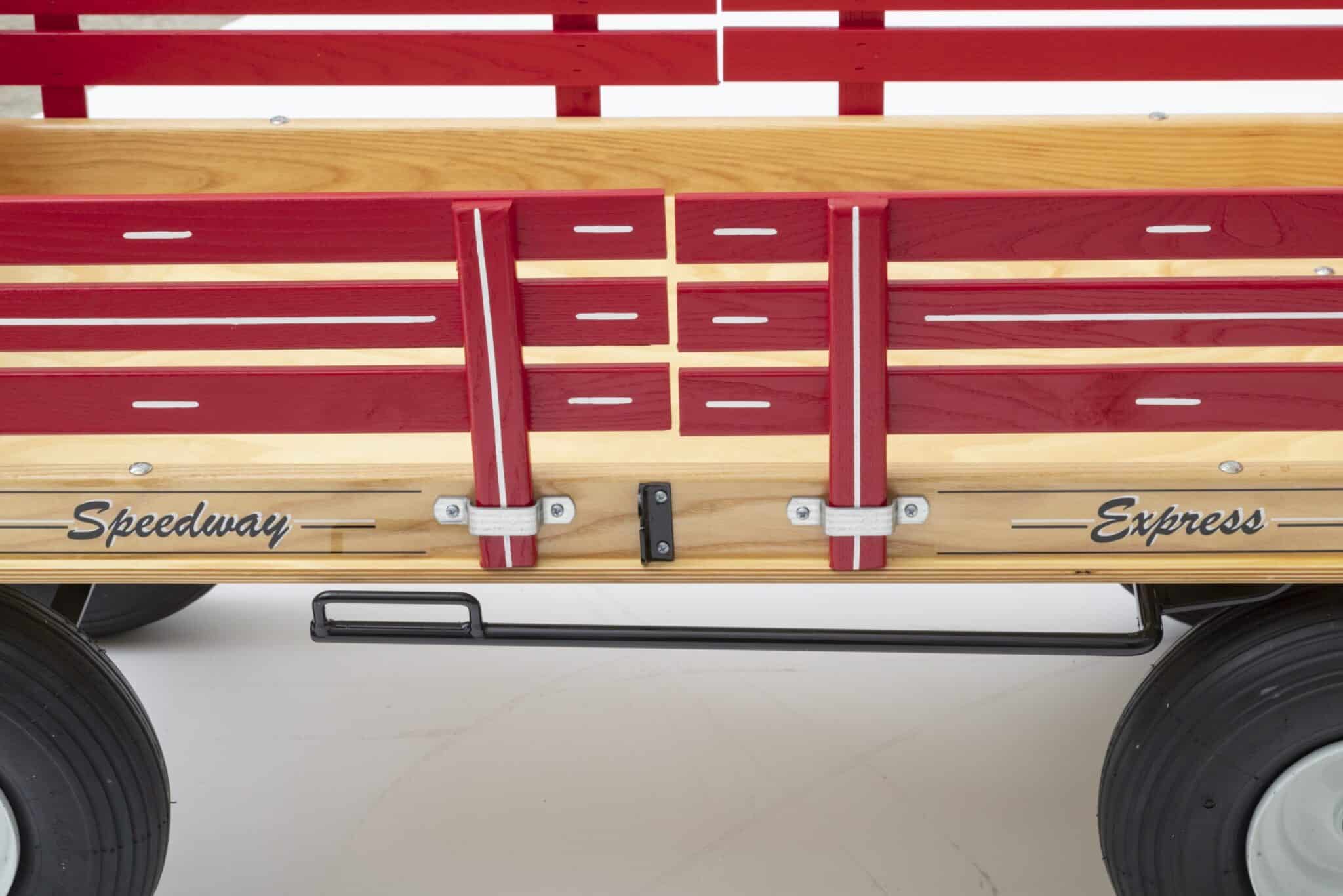Speedway Express children’s wagons have been manufactured for more than 50 years on an Amish Farm in Lancaster County Pennsylvania. Each Speedway Express wagon is sturdy well built and will last for generations to come. Our kids wagons are handcrafted from the finest hardwoods and manufactured to strict specifications including an adult length large “D” handle for better grip and durability.The side rails are all removable and are made with ash wood, stapled and glued for stronger bond. The flat bed is made of birch plywood and is double coated with varnish for better water resistance.