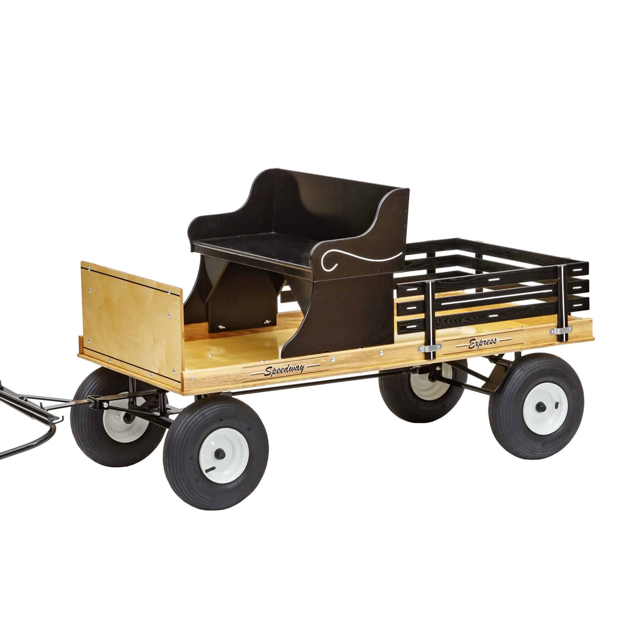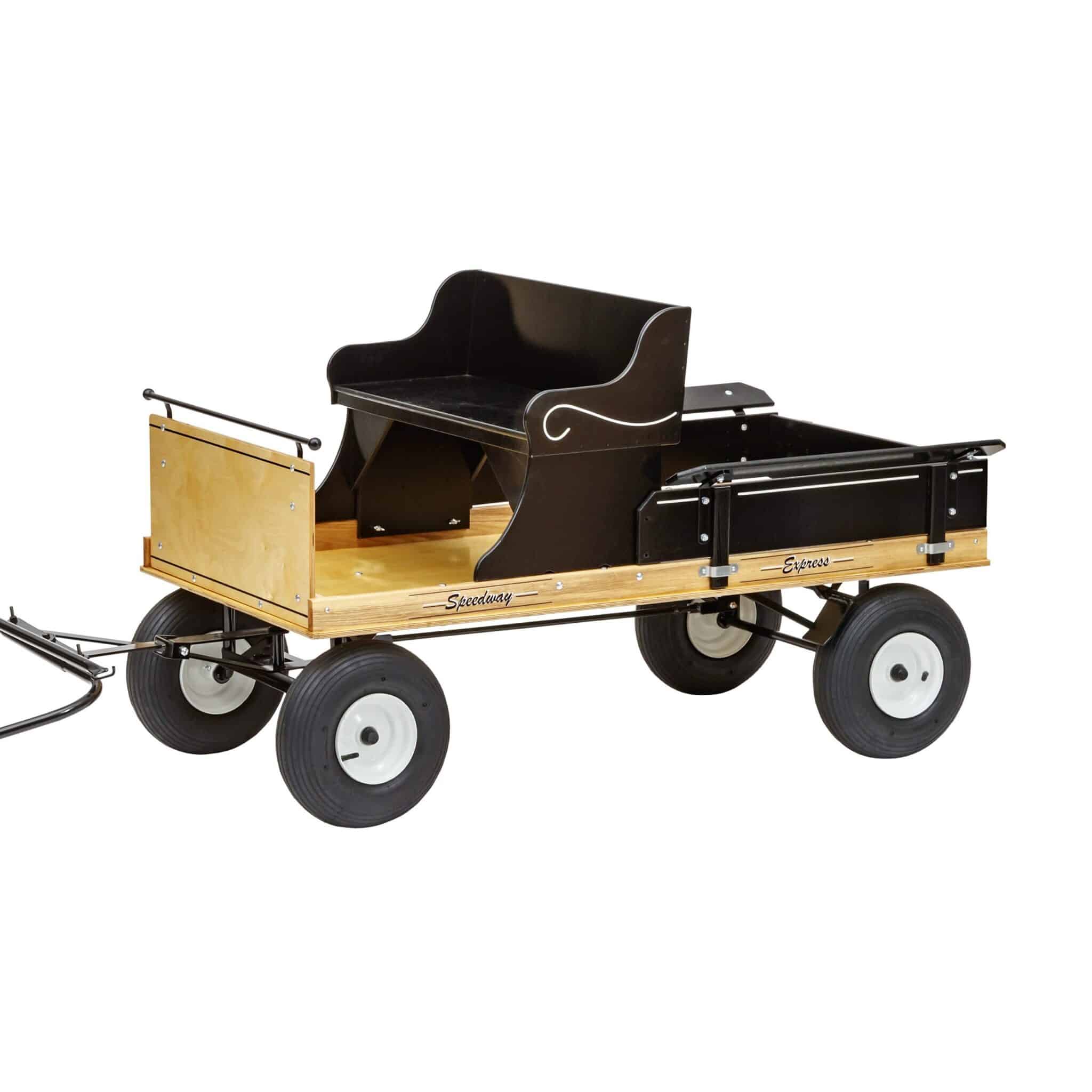 Every wagon under-frame features a no tilt auto steering, air tire or flat free ball bearing wheels, and welded heavy gauge steel framework with bracing welded to the ⅝ inch axle. Speedway Express wagons can handle loads up to 2000 pounds which means your wagon can be used for work or play.